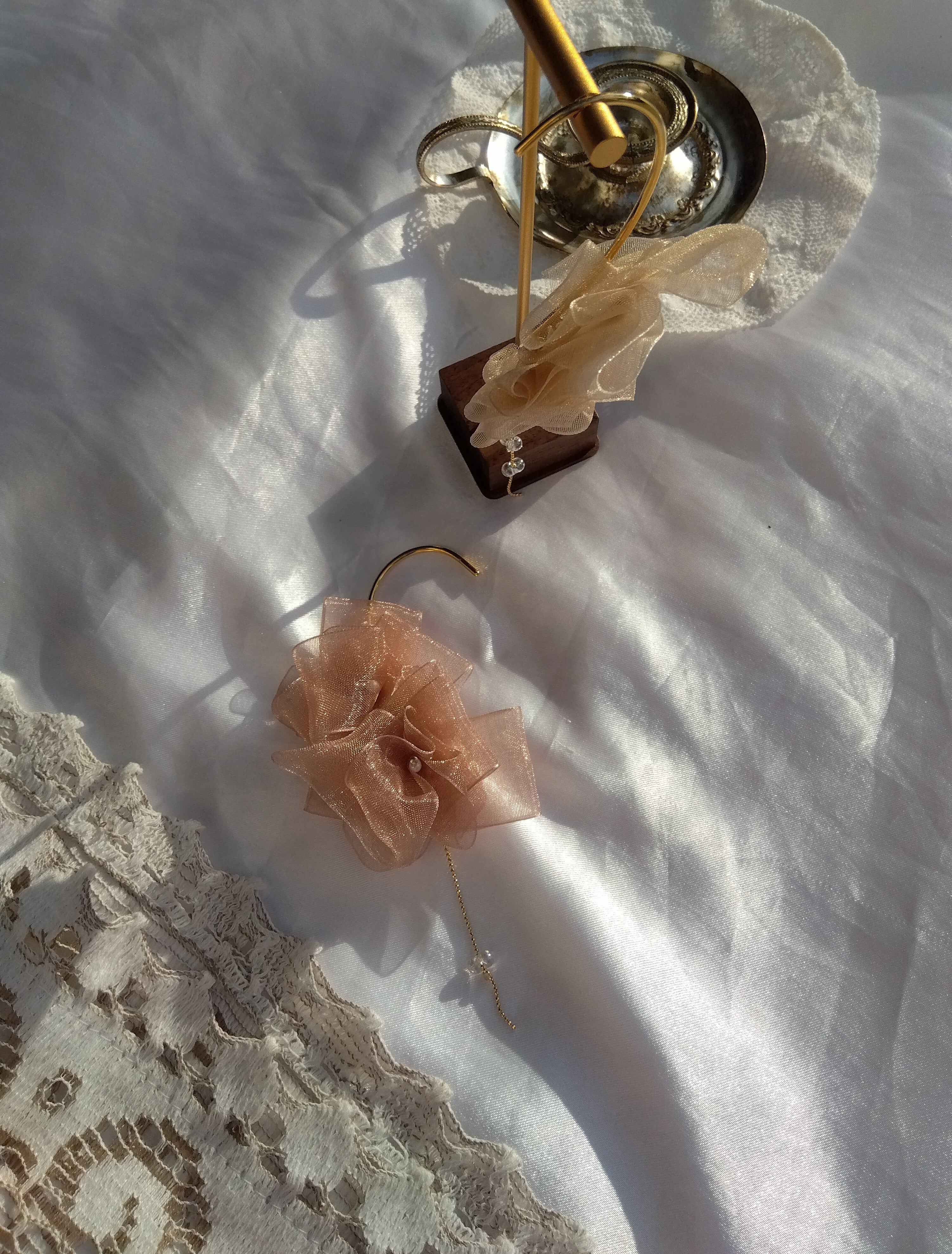 お花のイヤーフックを作りました*。゜。