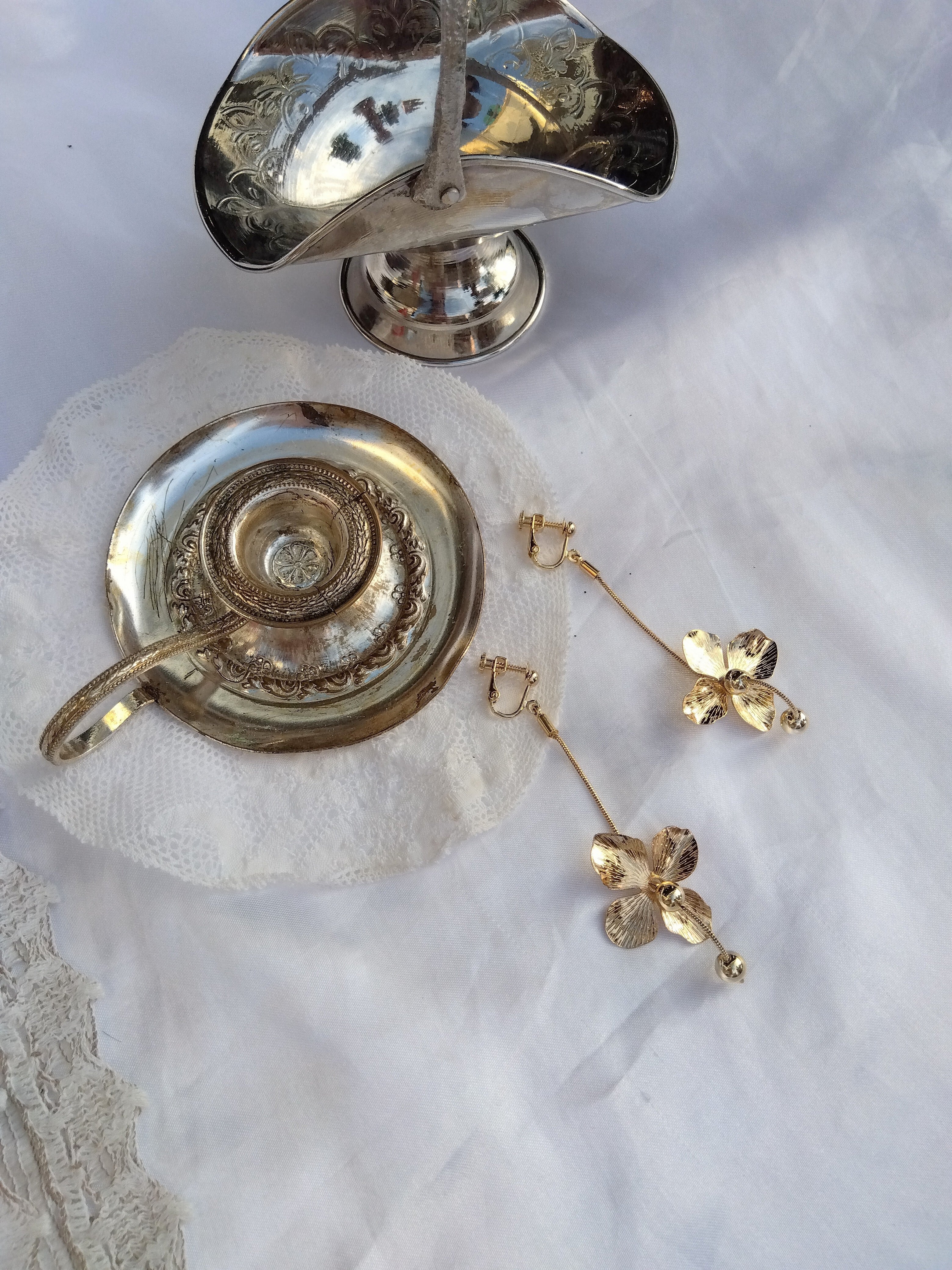 小さな太陽のように輝く金色のお花が、耳元でふんわりと煌めくイヤリングです。