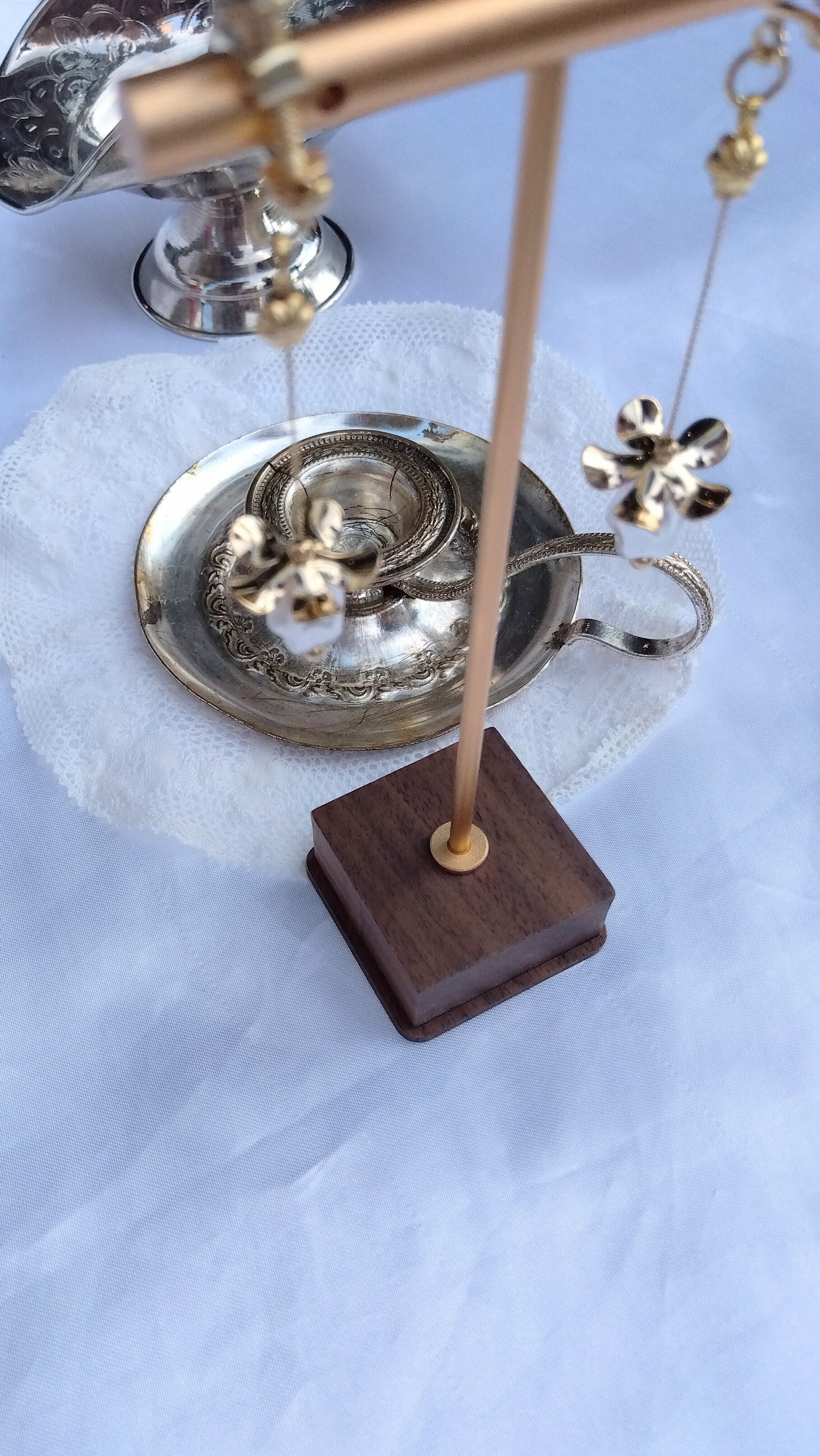 可憐な小花と、やさしく輝く小さなパールを組み合わせたイヤリング。