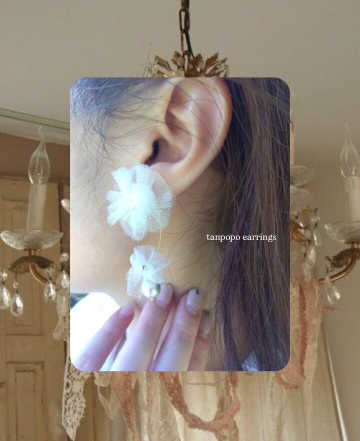 ふんわりと広がるチュールでタンポポをイメージしたイヤリングになります。